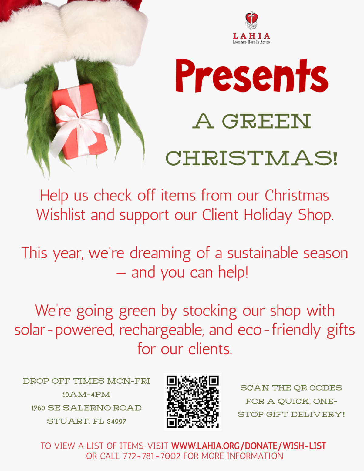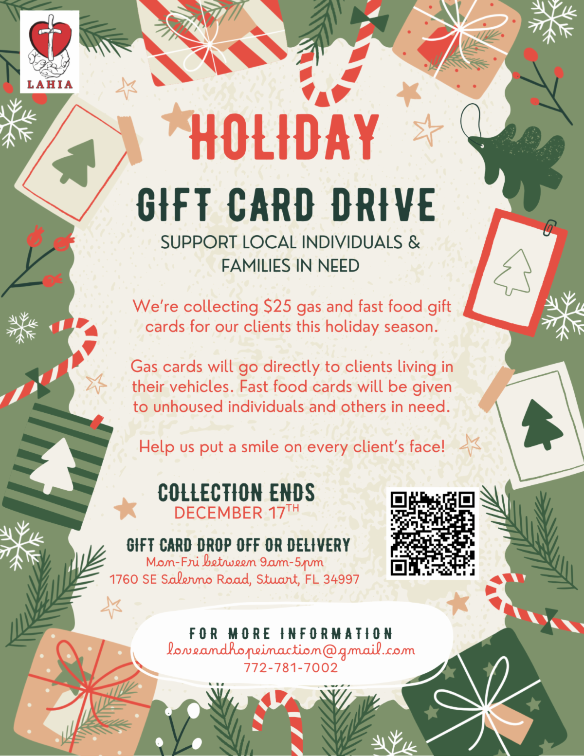 During Christmas week, we will be hosting our annual Holiday Shop at LAHIA, where clients will have the opportunity to select a special gift for themselves—along with a $25 gift card.