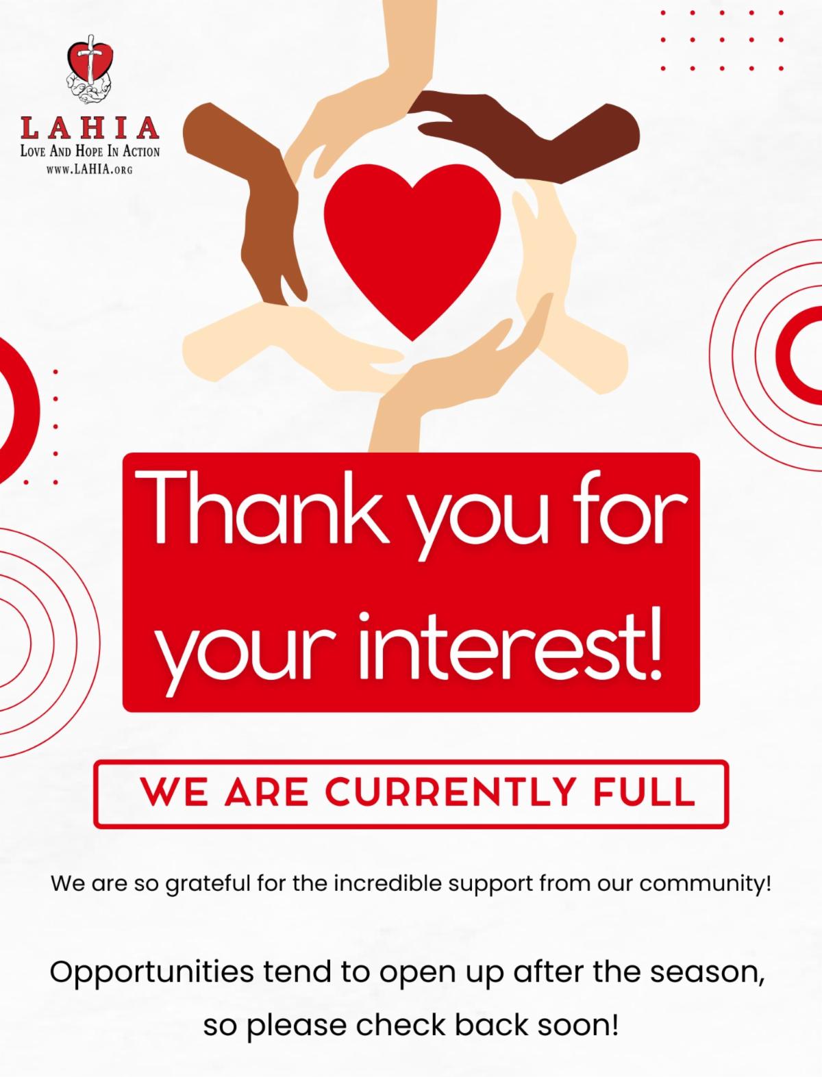 VOLUNTEERS ARE ALWAYS NEEDED!